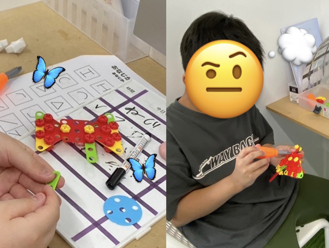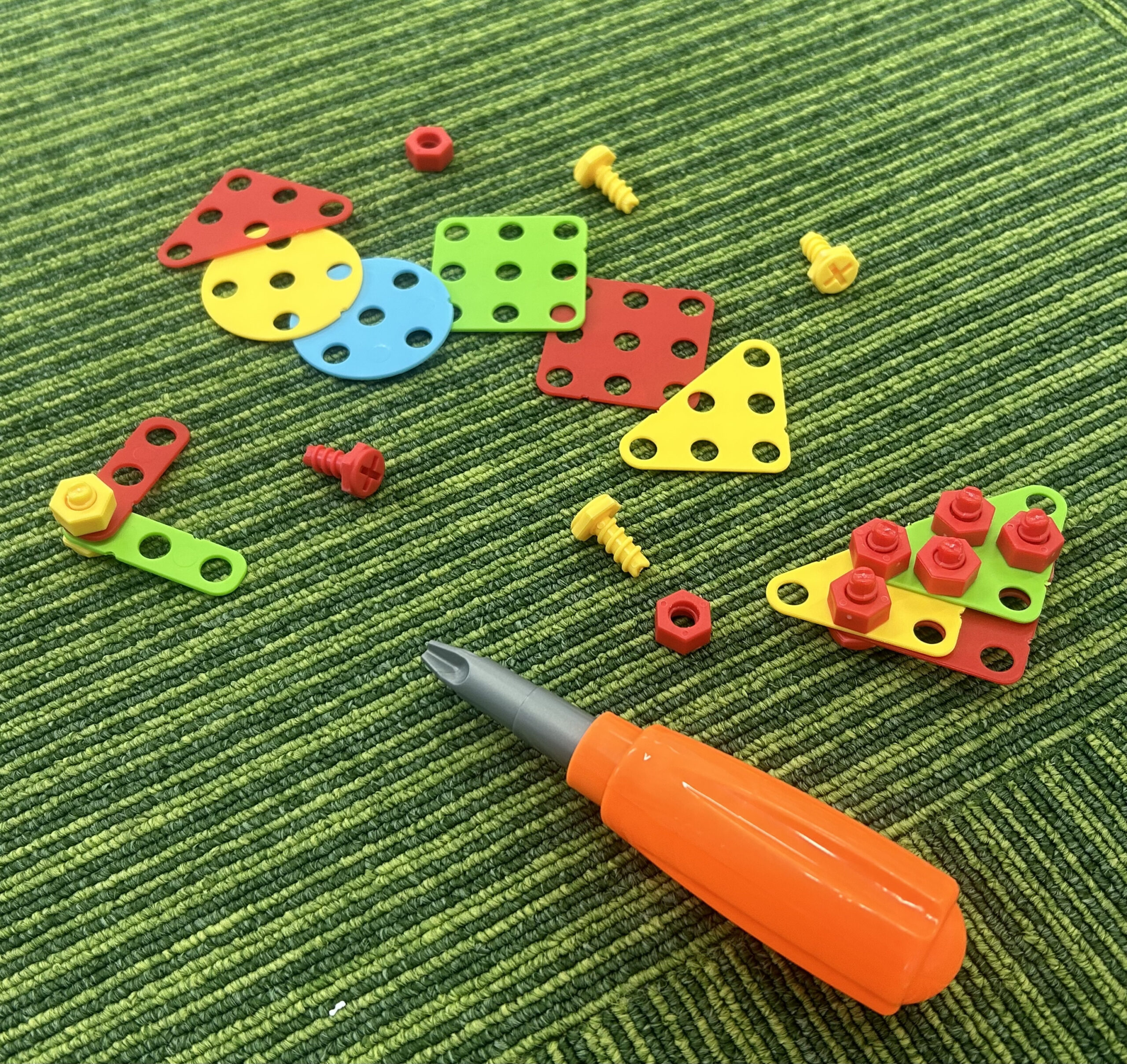 プレートを組み合わせて形を作るので、考える力が身に付き、利き手でない方で細かいパーツを抑えながら、利き手でドライバーをまわすので最初は難しいかもしれませんが、繰り返すことで集中力も養うことができます★