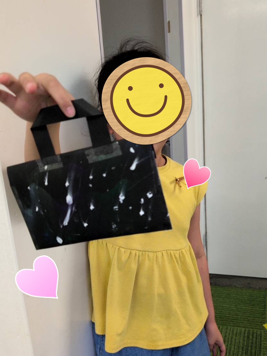 こちらのお子さんは、できた作品を使ってカバンを作成していました!
