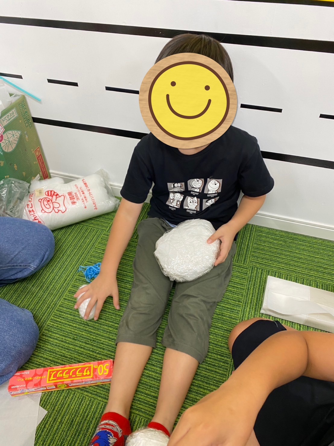感触が気持ち良いので、完成したものを「触ってみて!」と指導員に言って触らせてくれていました!