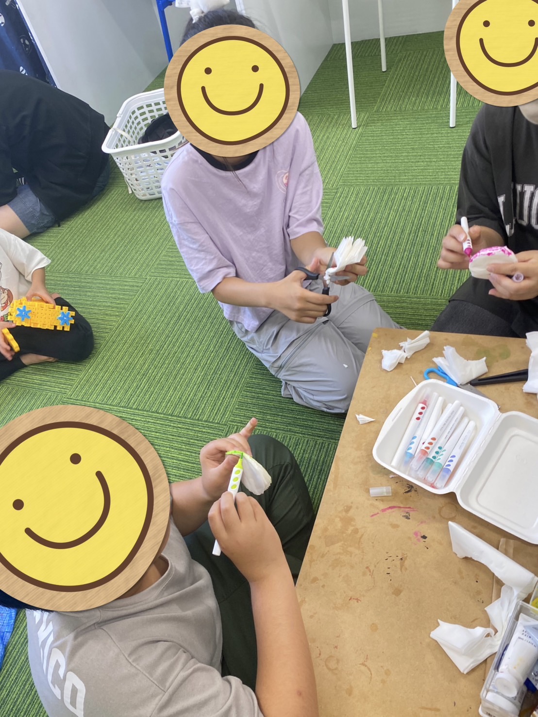 ティッシュの素材が柔らかく、側面を塗ることが少し難しそうでしたが、好みの色のマジックを選んで一生懸命色付けしていました!