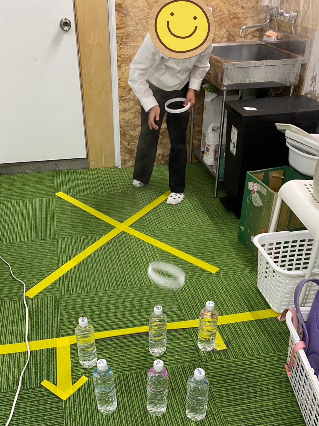 ペットボトルと3Dで作成した輪っかを使って輪投げをしました!