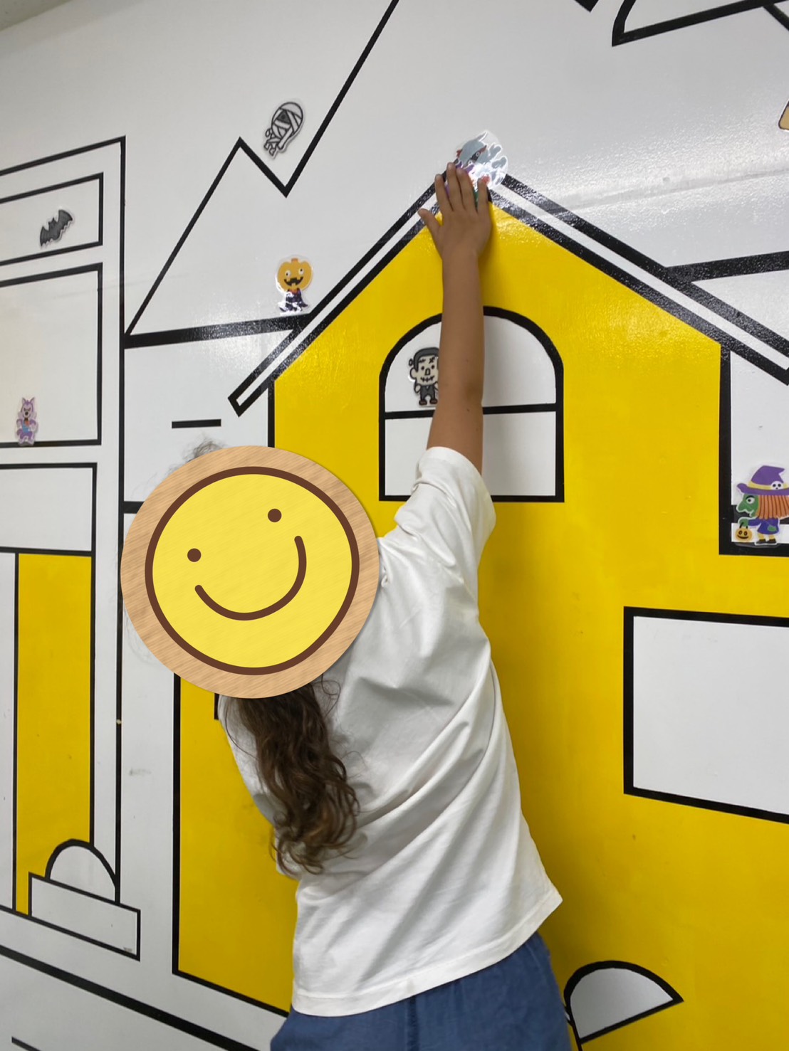 高い場所に貼られているイラストにも果敢にジャンプしてタッチしに行っていましたよ!