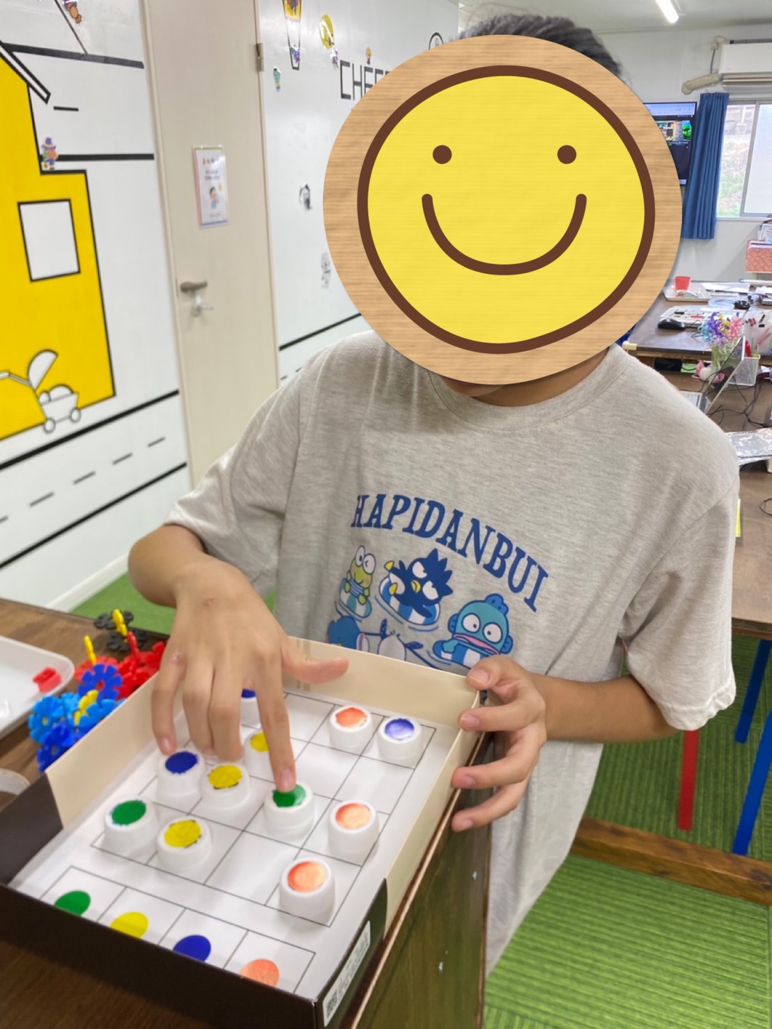 格子型の枠のところで1つずつ動かして、同じ色の列に並べ直すという取り組みです!